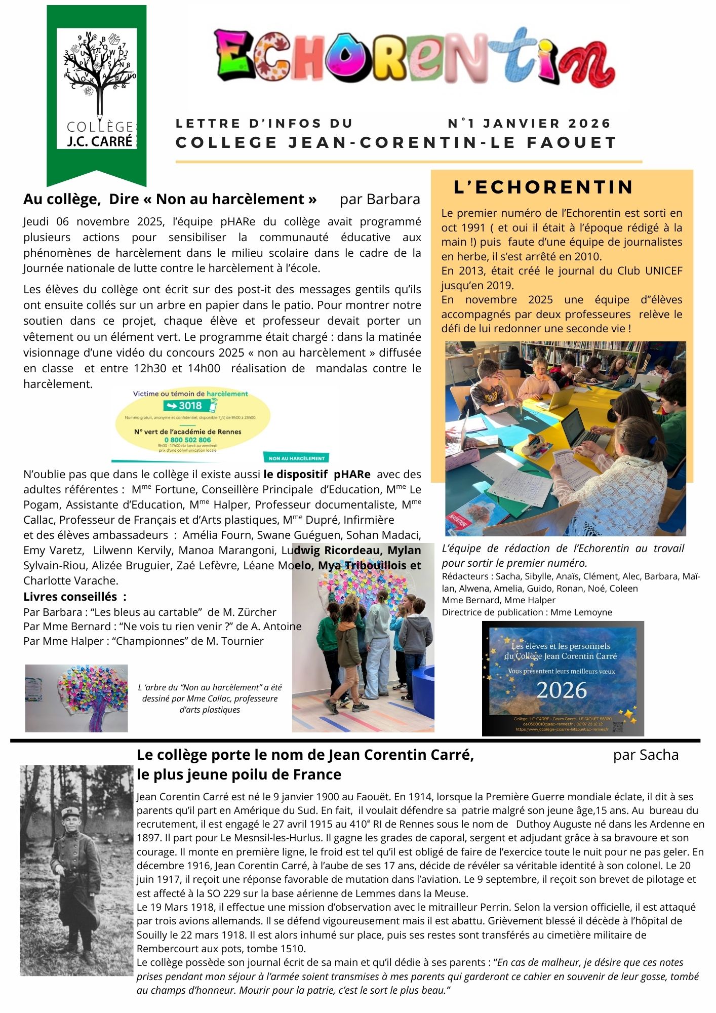 Manon en 5e A, Chloé, Julie H, Julie R. Margaux, Enora, Liloue, en 5e B. Elisa et Nolwenn en 4e A |