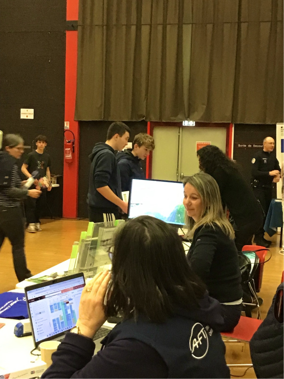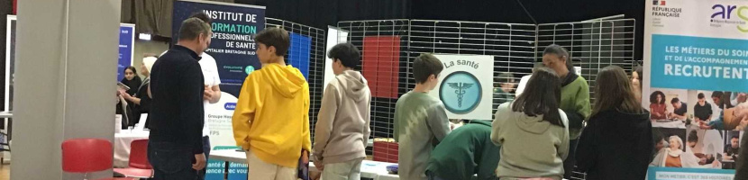 Jeudi matin 27 mars 2025, à la salle des Arcs, se déroulait le forum des métiers Le parcours Avenir, organisé par le Centre d’information et d’orientation (CIO) de Lorient et le BEF 56 . Cet évènement permet aux élèves de 4e de se familiariser au monde professionnel en rencontrant des acteurs de secteurs variés : santé, justice, soin à la personne, la mer, la transition vers le numérique…